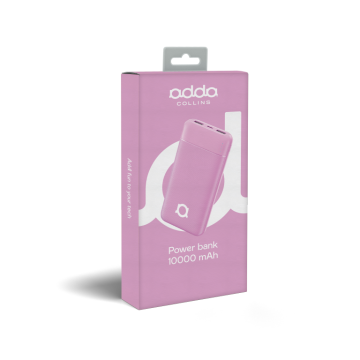 Powerbank Adda Collins PB-001-LP, Fusion powerbank, 10000mAh, Micro USB i Type-C ulazi, 2xUSB-A izlazi, 12W, roza