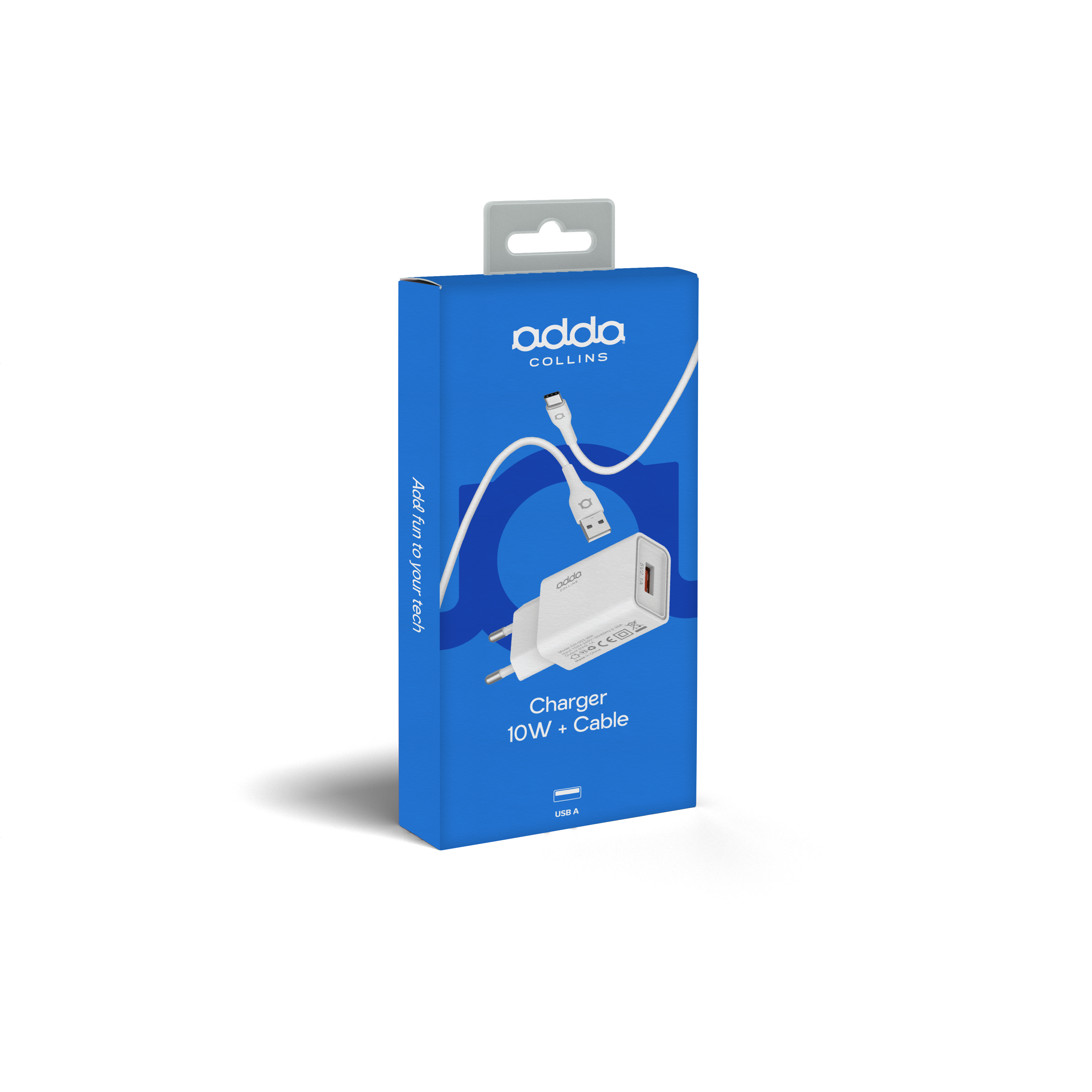 Zidni punjač Adda Collins CH-003-WH, s USB-A na Type-C kabelom, 1m, 10W, 2.1A, bijeli